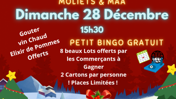 bingo gratuit organisé par Moliets Maâ station (association des commerçants) bingo gratuit organisé par Moliets Maâ station (association des commerçants) Publié le 20 décembre 2025 / Dernière modification le 20 décembre 2025 bingo gratuit organisé par Moliets Maâ station (association des commerçants) Publié le 20/12/2025 - Dernière modification le 20/12/2025 bingo gratuit au pôle animation à partir de 15h30 inscription recommandée au 07 68 57 37 42