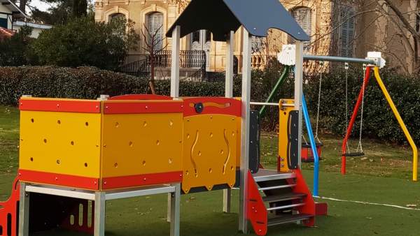 Une aire de jeux pour petits dans le parc du château.