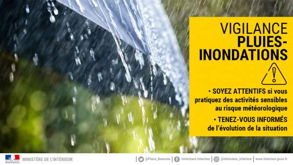 VIGILANCE JAUNE à enjeux de sécurité pour le phénomène pluie-inondation